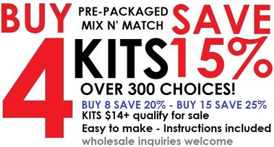 It's that time again - our semi-annual kit sale is ON - now thru mid-November and includes all our kits prices $14 or more. Many of our kits are perfect for beginners and younger creative types. All of our Chevron styles (over 40 Choices), new Tranquility, Micro Chev3 and Skipping Stones kits can be put together with NO TOOLS! They’re a great hands-on activity for family gatherings, parties, girls night out, gifts and more. They’re great to have on hand for a fun creative project any time. The more you buy, the more you save! Wholesale and high volume buyers can double up THEIR DISCOUNT on this studio-based promo as well - creating net discounts of up to 47.5%!