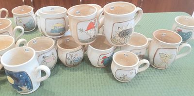 Gloria Van Dixhorn (Madison) - Wood Fired Whimsical Clay Mega Mugs